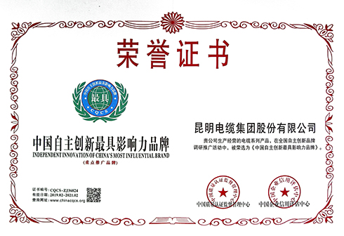 中國自主創新最具影響力品牌證書