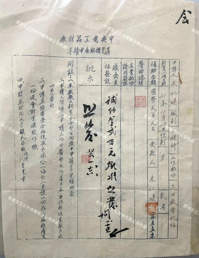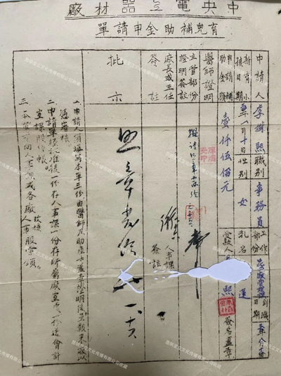 ▲1948年8月中央電工器材廠(昆明電纜集團前身)發放職工育兒補助金圓券20元。