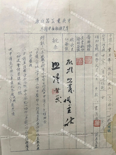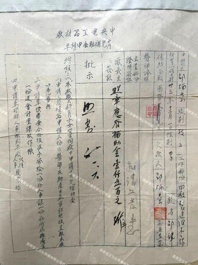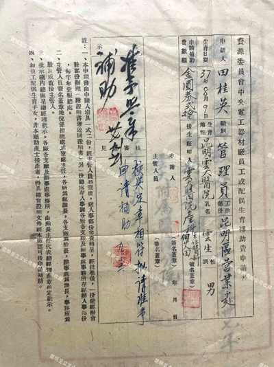 ▲1943年10月中央電工器材廠(昆明電纜集團前身)發放職工育兒補助國幣300元。