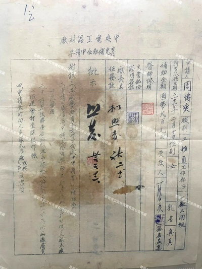 ▲1944年12月中央電工器材廠(昆明電纜集團前身)發放職工育兒補助國幣1500元。