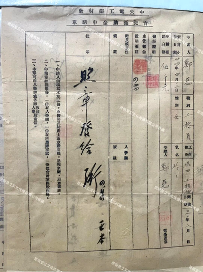 ▲1942年9月,中央電工器材廠(昆明電纜集團前身)發放職工育兒補助國幣200元。