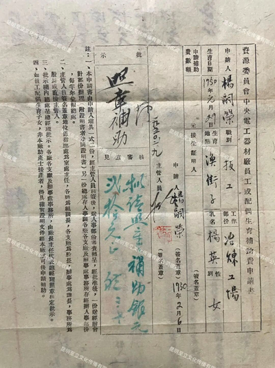 ▲1950年2月電工器材廠(昆明電纜集團前身)發放職工育兒補助銀元20元。
