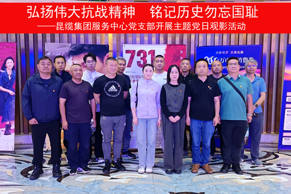 值此紀(jì)念中國(guó)人民抗日戰(zhàn)爭(zhēng)暨世界反法西斯戰(zhàn)爭(zhēng)勝利80周年之際,為激發(fā)黨員干部的愛國(guó)熱情與使命擔(dān)當(dāng),加強(qiáng)愛國(guó)主義教育,弘揚(yáng)偉大民族精神,銘記歷史勿忘國(guó)恥,2025年9月24日下午,昆纜集團(tuán)服務(wù)中心黨支部組織黨員干部、共青團(tuán)員20余人一同走進(jìn)影院,觀看紀(jì)念抗戰(zhàn)勝利題材電影《731》,開展主題黨日觀影活動(dòng)。